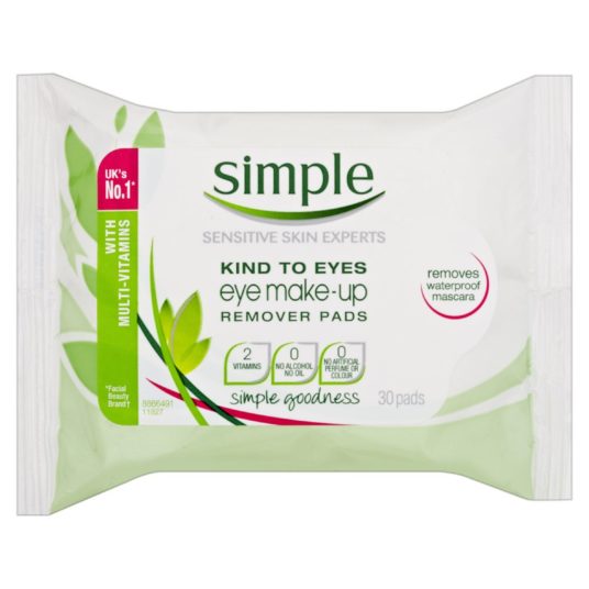 Если любите снимать макияж в самолете, то рекомендую диски Simple Kind To Eyes Eye Make Up Remover Pads. Они похожи на обычные ватные диски, поэтому влезут в любую косметичку, а по эффективности превосходят салфетки для снятия макияжа.