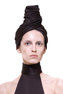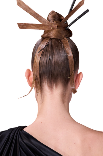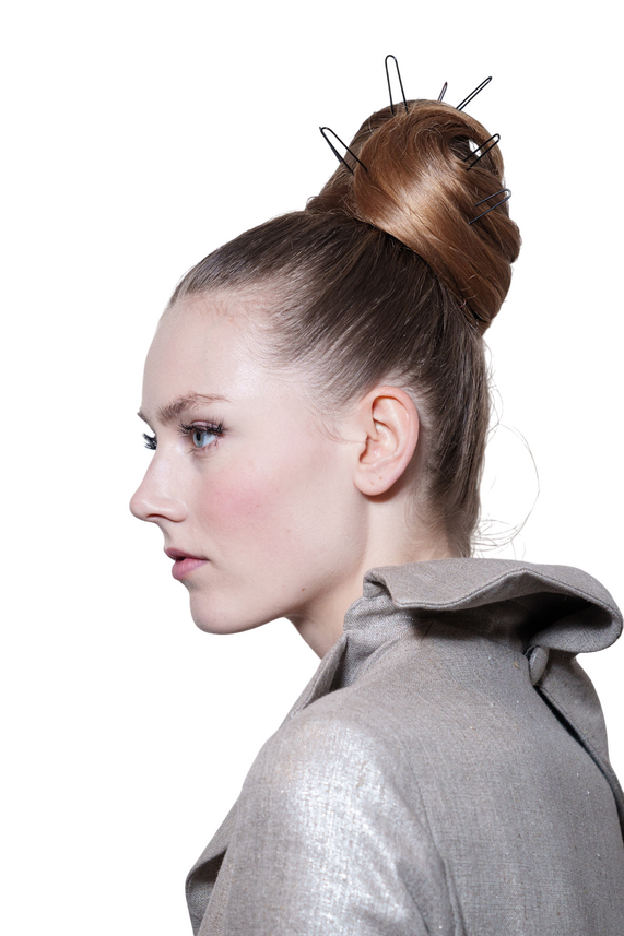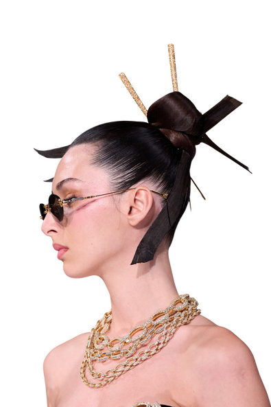 И этот «фундамент», кстати, — самое сложное. Как отмечает Алексей Горбатюк, стилист и основатель «Алгоритм Beauty Club», высокие прически с акцентом на макушку — как та же «пальма» — только выглядят простыми. На практике такие формы требуют безупречно собранных волос — сделать это самостоятельно не так-то просто. «Высокий хвост собирается слой за слоем, начиная от макушки. Волосы нужно вычесывать плотной щетинистой щеткой и каждый слой обильно сдабривать средством для фиксации, — объясняет стилист. — Чтобы добиться идеально гладкого затылка и четкого силуэта в профиль, волосы ниже затылочного бугра вычесывают, работая с положением головы — подбородок должен быть чуть приподнят. В результате вся динамика прически тянется вверх, а она будет буквально заставлять держать осанку».