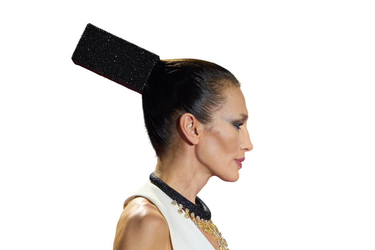 Несколько дней спустя, когда началась неделя высокой моды, стало ясно, что одним хвостом мы не отделаемся. На Christian Dior появились высокие остроконечные пучки, напоминающие шипы, у Schiaparelli макушки украшали короны и птицы, у Valentino — плюмажи, у Stéphane Rolland — огромные геометрические конструкции, у Peet Dullaert — ирокезы из перьев. При всем разнообразии форм эти образы объединяло одно — смещение акцента в самую верхнюю точку головы.