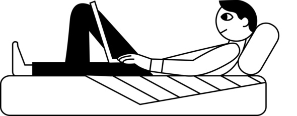Работать лежа не самая здоровая привычка, но если иначе никак, ложитесь на спину и подложите под голову невысокую подушку. Важно расположить ноутбук на коленях так, чтобы экран был слегка откинут назад и располагался на уровне глаз, а запястья лежали. Не работайте полусидя или на животе: в первом случае перенапрягаются глаза, шея и запястья, а во втором — запястья и спина.