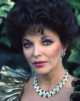 Джоан Коллинз на съемках сериала «Династия», 1986