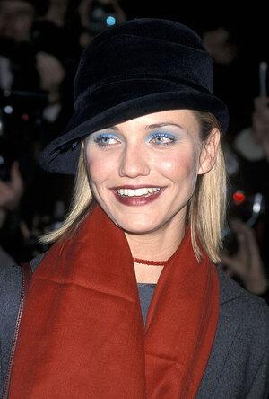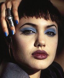 Мрачноватая эстетика эпохи 1990-х перетягивает синие оттенки на темную сторону, и бал правят небрежные smokey eyes в сочетании с кирпичной помадой, алебастровой кожей и избыточной худобой. Моду диктуют новые голливудские звезды Кэмерон Диас, Гвинет Пэлтроу, Анджелина Джоли и супермодели Кейт Мосс, Эмбер Валлетта, Линда Евангелиста.