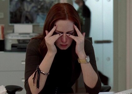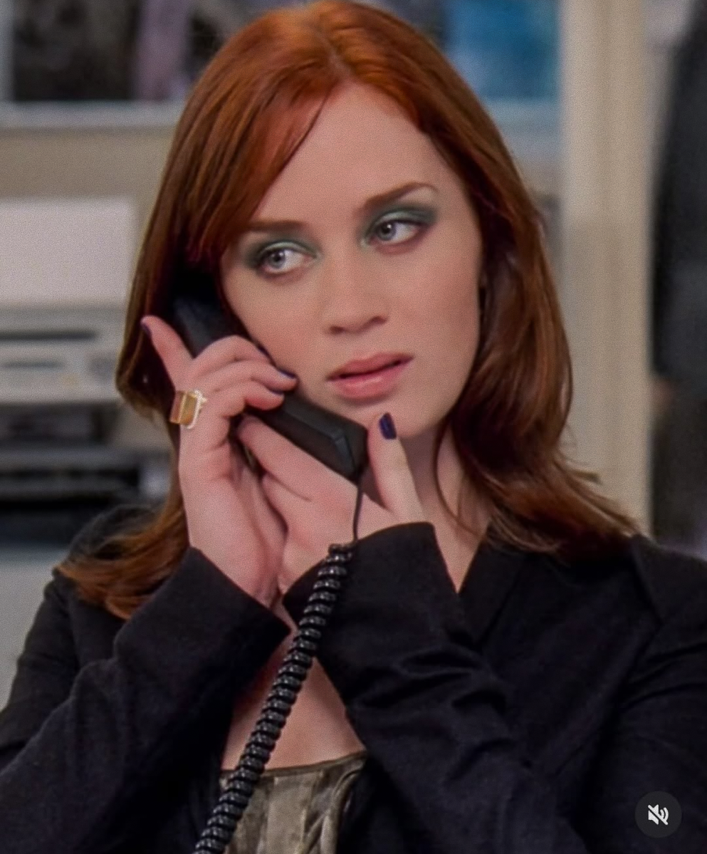 Главная деталь макияжа первой ассистентки Миранды Пристли, Эмили Чарлстон, — яркие тени, растушеванные почти до бровей, и щедро нанесенный на верхнее и нижнее веки черный карандаш. Двадцать лет спустя это сочетание все еще выглядит свежо: с голубыми и лавандовыми тенями во все веко выходили модели на последнем показе Marc Jacobs в Нью-Йорке, а с сиренево-розовыми — модели Carolina Herrera. Яркий макияж глаз живет и на красных ковровых дорожках, и в модных рекламных кампаниях — примеры демонстрируют Чаппелл Роан, Вунми Мосаку и Лили-Роуз Депп. А голубые тени вообще в особом почете — Pinterest назвал cool blue одним из самых модных оттенков 2026 года.