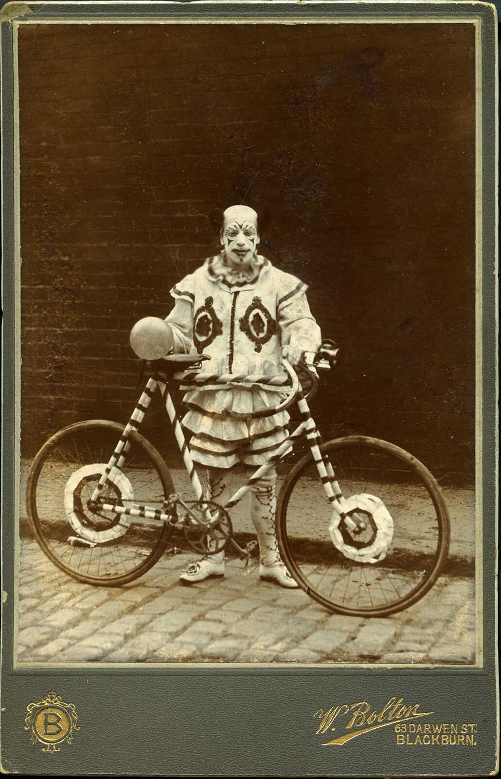 Клоун с велосипедом, Блэкберн, Англия, около 1900-х годов