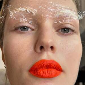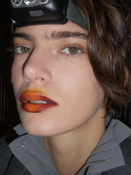Эра странных помад продолжается: год назад на подиумах вдруг стали мелькать губы самых неожиданных оттенков — горчичных, серых, неоново-розовых, а теперь к ним добавились оранжевые. На фоне других радикальных цветов этот кажется почти привычным — но при этом остается одним из самых неоднозначных.