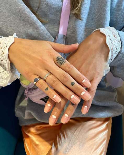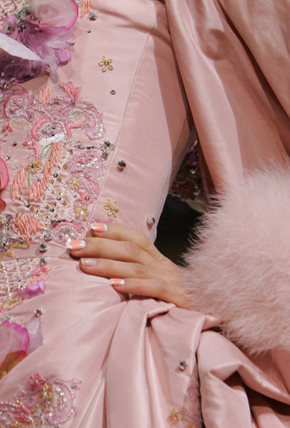 «Исторически лунный маникюр был более контрастным и жестким по форме: четко очерченная лунка, плотные оттенки, часто яркие или темные (вот прям как в фильме), — продолжает Арина Лехова. — Сегодня он стал гораздо тоньше и интеллигентнее. Лунка может быть едва обозначена нюдовым или прозрачным лаком, микроотступом от кутикулы. Контраст часто заменяется нюансом: матовое и глянцевое, полупрозрачное и плотное, холодный и теплый оттенок одного цвета». Цвета тоже можно брать самые модные — серо-бежевый тауп, светло-голубой, пыльно-розовый, молочно-белый. Например, звездный нейл-мастер Гариетт Вестморленд часто делает своим клиентам «мыльный маникюр» с едва заметными лунками — выделяет их чуть более плотным слоем молочного лака.