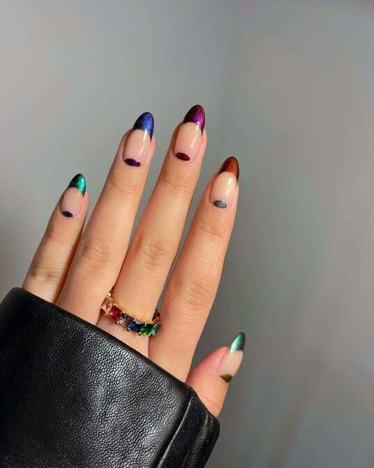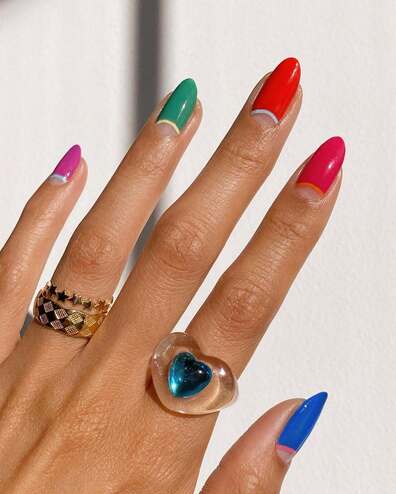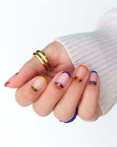 Но есть и минусы — чтобы ровно выделить лунулу контрастным лаком, нужно такое же мастерство, как и для прорисовки френча. Правда, есть выход — накладные ногти, которые тоже недавно вернулись в ряды трендов. На съемочной площадке «Марти Великолепного» использовали именно их. Можно заранее накрасить типсы, как вам нравится, и приклеивать по несколько раз, например, «на выход» — это, пожалуй, самый быстрый и точный способ добиться идеальной геометрии.