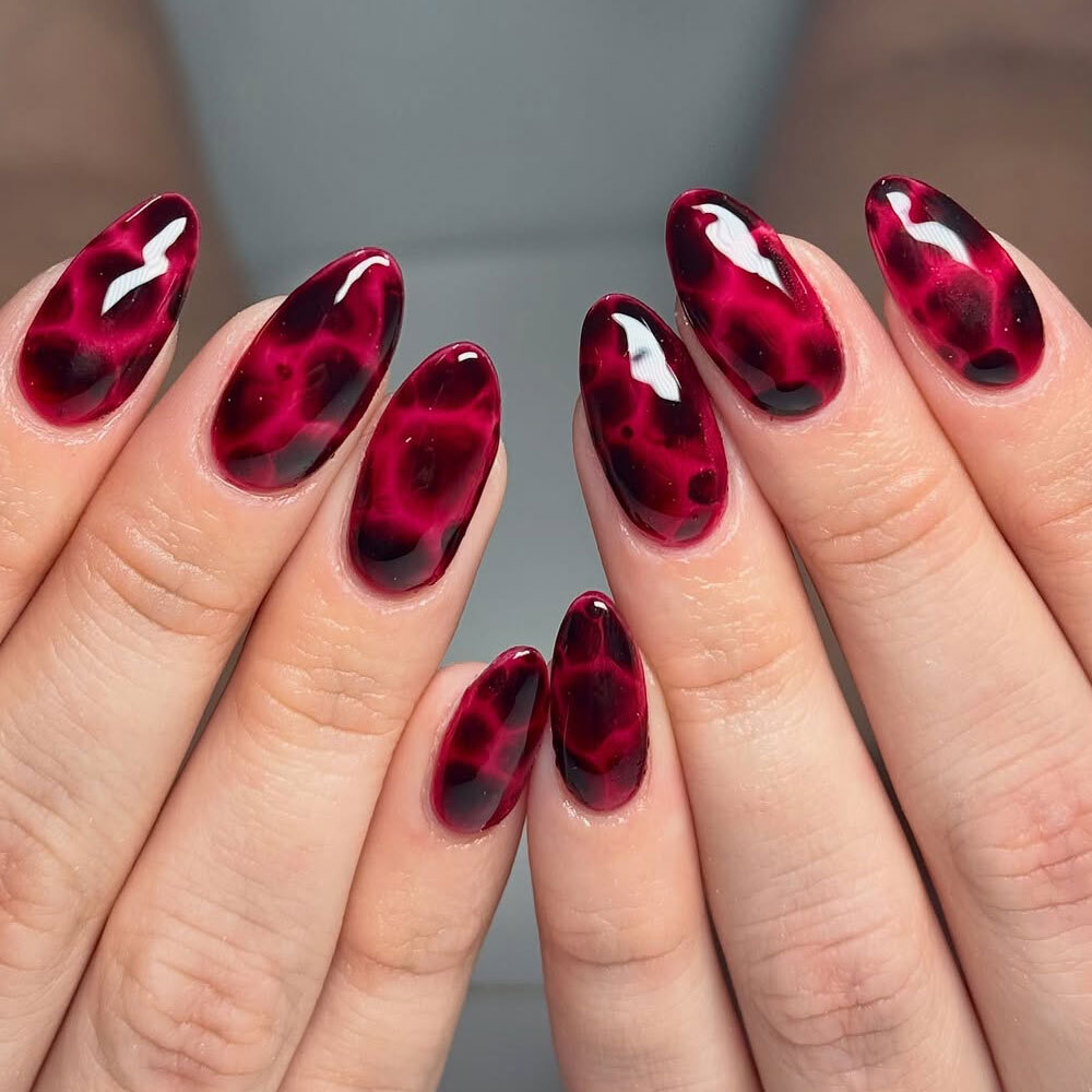 «Черепаховый принт всегда выглядит дорого, — говорит Кристина Ясюкевич. — Обожаю его в витражной технике, но и более минималистичный рисунок, выполненный плотными цветами, — отличный вариант. Принт сдержанный, будет здорово разбавлять нюд в качестве акцентного дизайна, а если сделать на все 10 ногтей, сольется в теплый, янтарно-коричневый монохром». Кстати, выбирать коричневые оттенки совершенно необязательно — тот же принт отлично будет смотреться в бордовых или темно-зеленых тонах.