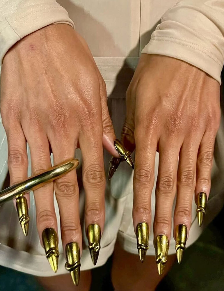 На протяжении последних нескольких сезонов мастера маникюра всячески экспериментировали с металлическими покрытиями для ногтей — имитировали то футуристический блеск хрома, то потертое семейное серебро. Но судя по неделе моды весна-лето 2026, в моду возвращается классический золотой лак — он был замечен на показах Alice + Olivia, Bronx and Banco и Laquan Smith. Впрочем, ждать весны необязательно — зимой, особенно в новогодние праздники, золото придется как нельзя кстати.