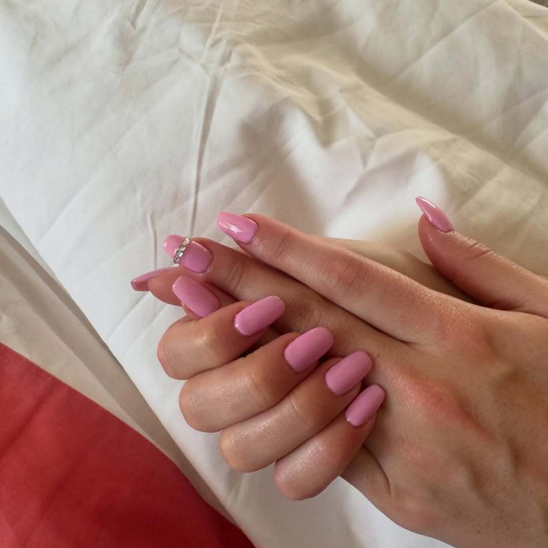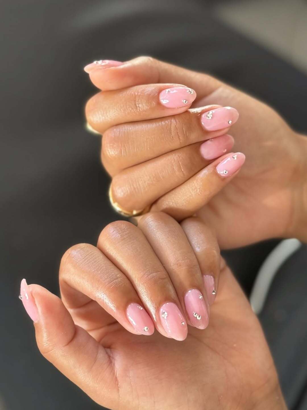 Нежно-розовый маникюр — компромисс для тех, кто хочет романтики, но без наивных рисунков-сердечек. Такой, например, на «Грэмми» выгуливала певица Оливия Дин — ее нейл-стилист Эри Ишизу дополнила розовый лак россыпью крошечных страз. А вообще baby pink хорош и сам по себе, а главное, всегда уместен.
