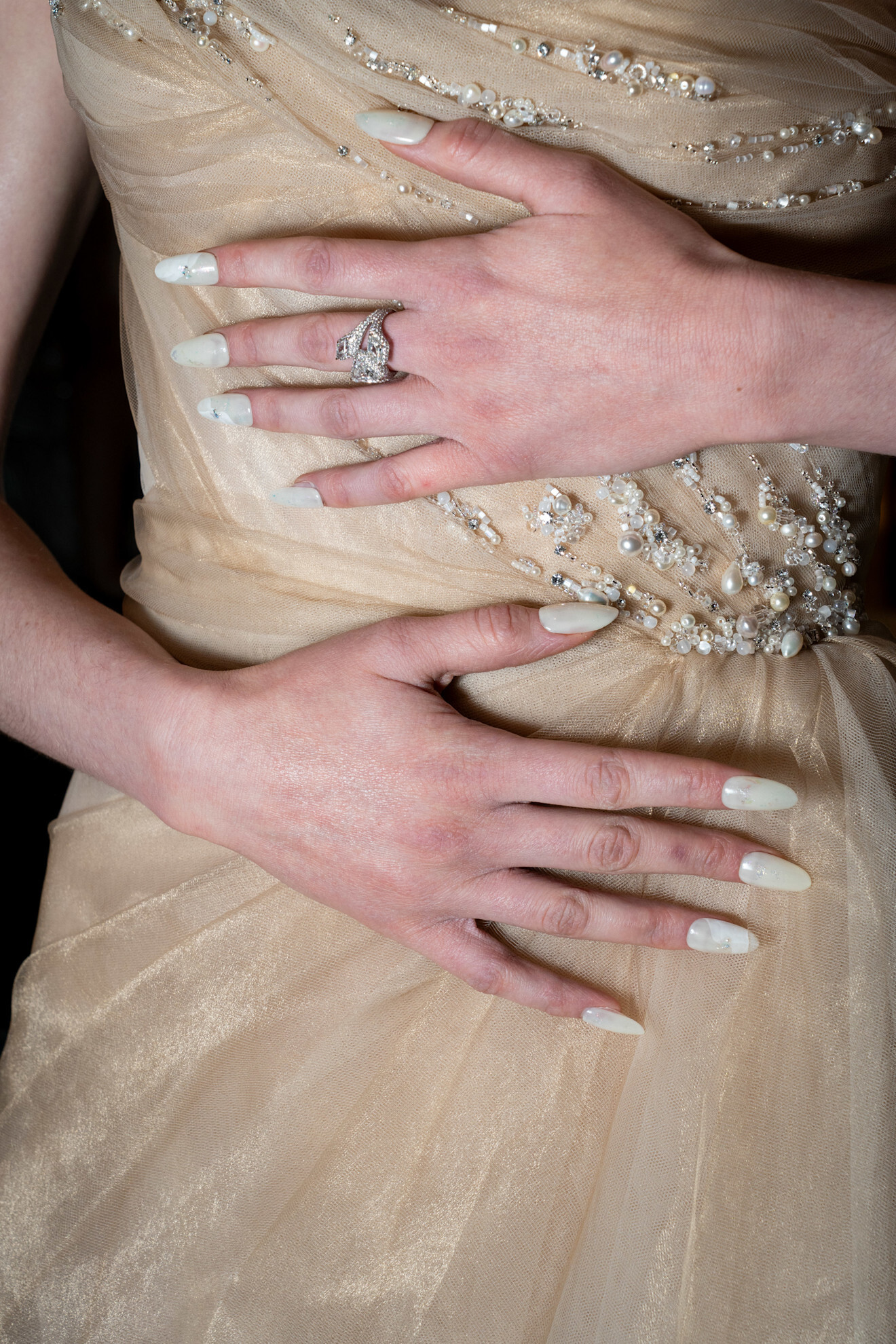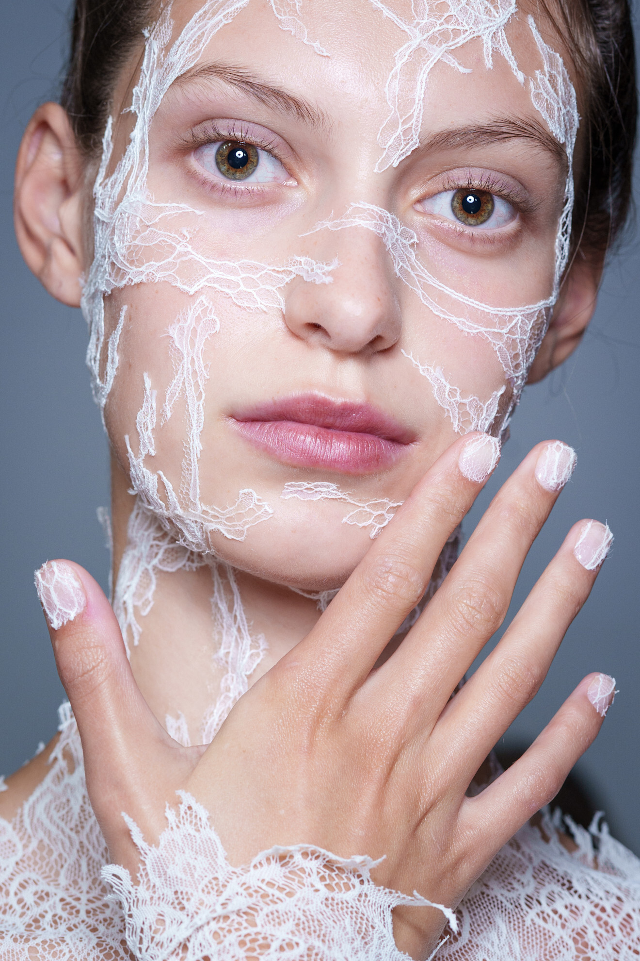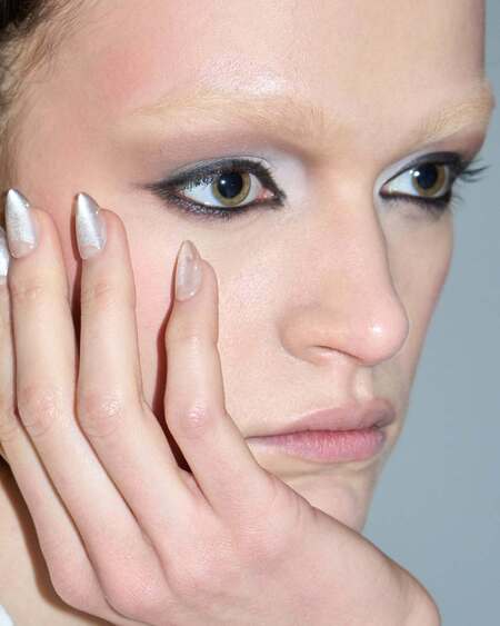 Лунный маникюр с новой силой ворвался в соцсети после фильма «Марти Великолепный» (там он стал чуть ли не главным стилеобразующим элементом героини Гвинет Пэлтроу). В тиктоке и инстаграме — тысячи вариаций этого ретроманикюра, но самый модный был замечен на кутюрном показе Viktor & Rolf весна-лето 2026. Нейл-стилист Дэниел Смедман нанес на типсы полупрозрачный серебристый лак с эффектом «кошачий глаз», а лунки выделил телесным оттенком. Телесным в буквальном смысле — цвет лунки в точности повторял цвет кожи каждой модели. В жизни такой буквальности можно не придерживаться, но эффект «голых» ногтей сохранить все-таки стоит.