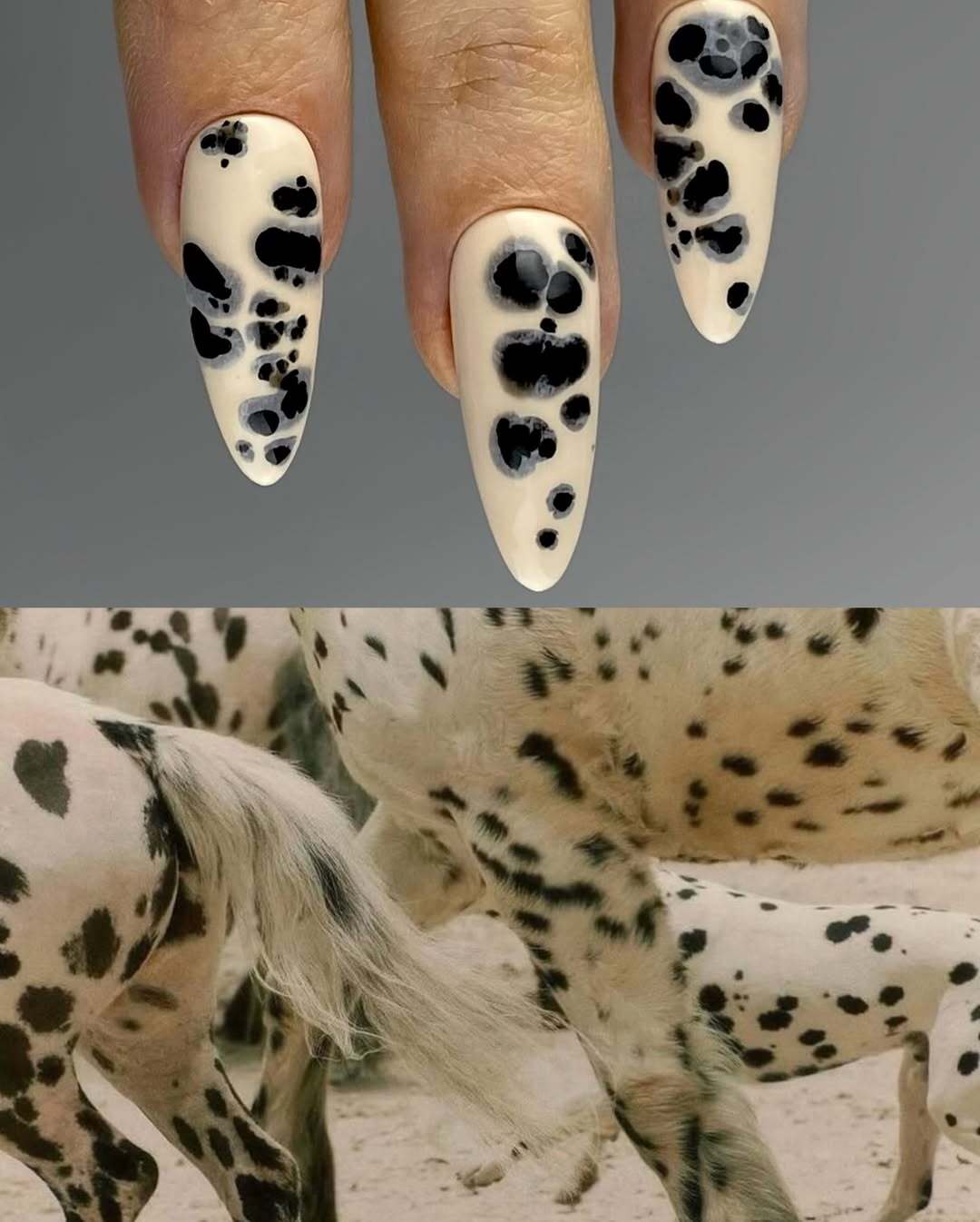 Звериные принты продолжают перебираться с одежды на более безопасную для фауны территорию — ногти. Берем пример с большой любительницы нейл-арта Дуа Липы и вдохновляемся зверьем исключительно пятнистым — мастер Ким Труонг нарисовала на ее ногтях то ли жирафа, то ли гепарда, то ли черепаший панцирь. Среди прочих фаворитов — коровы, лошади в яблоках, далматины, а еще олени. Принт «под Бэмби» — заметный микротренд этой зимы.