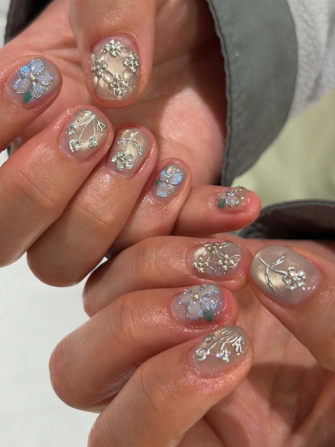 На кутюрной неделе моды весна-лето 2026 цветы были везде — кроме ногтей. Зато на страничках нейл-стилистов каждый год с начала февраля начинается настоящий вальс цветов. В новом сезоне в ходу будут крошечные, минималистичные цветочные принты — чаще всего на прозрачной или нюдовой базе. И никаких сезонных клише!
