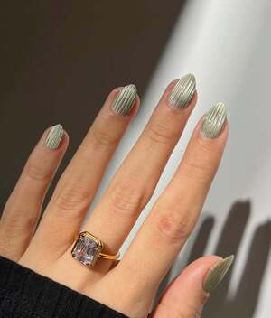 Еще один тренд, построенный на игре фактур, — маникюр с эффектом рифленого стекла. Рельефные полосы на ногтях напоминают поверхность винтажных ваз или бокалов и делают даже спокойные оттенки визуально более сложными. Добиться такого эффекта мастера могут с помощью 3D-геля или геля-пластилина: их наносят на всю ногтевую пластину, а затем «процарапывают» линии. «Самое главное, чтобы материал был густым и держал форму — иначе нужный рельеф не получится», — объясняет нейл-стилист Кристина Ясюкевич. Сверху такой дизайн можно перекрыть полупрозрачным лаком любого понравившегося вам оттенка — это подчеркнет глубину и придаст тот самый стеклянный эффект.