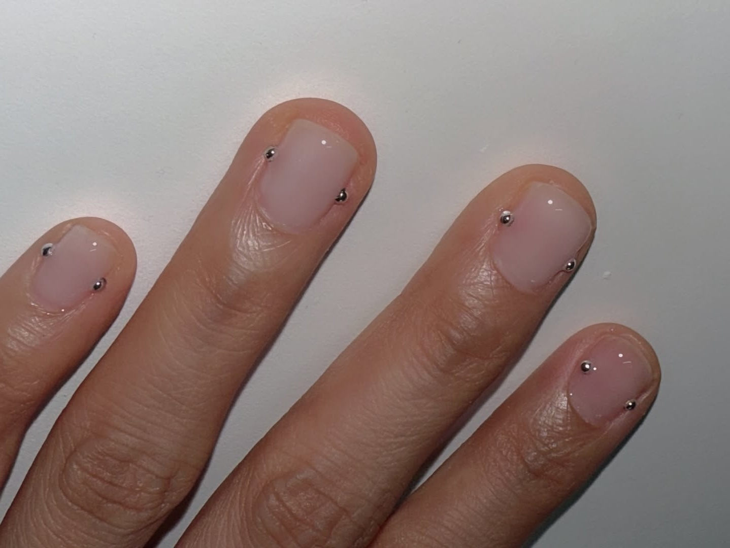 Тренд на «обвес» для ногтей — всевозможные подвески, цепочки и пирсинг — никуда не исчез. Но сейчас популярнее становится более лаконичная версия — имитация серьги-штанги, как на недавнем показе Bronx and Banco осень-зима 2026-2027. Для этого мастера используют либо настоящее украшение и прячут перемычку под слоем геля, либо фиксируют металлические бусины по бокам ногтевой пластины. «А еще можно использовать специальные объемные наклейки», — подсказывает Вика Гурьевская. А значит, тренд можно будет попробовать тем, кто не любит стойкое покрытие, да и вообще ничем покрывать ногти не хочет.