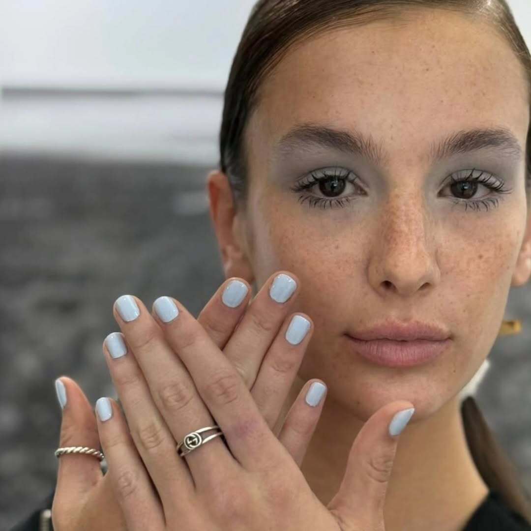 Один из способов приблизить весну — накрасить ногти цветом ясного неба. Тем более что нежно-голубой в моде, макияже и маникюре — один из самых заметных трендов не только весны, но и всего года. На подиуме без него тоже не обошлось: для показа Proenza Schouler весна-лето 2026 нейл-стилисты взяли светлый серо-голубой лак, а для Sandy Liang осень-зима 2026/2027 — кукольной-голубой с перламутровым отливом. Популярность цвета вполне объяснима — голубой на ногтях максимально универсален. «Несмотря на то что на фоне кожи он выглядит довольно контрастно, голубой никогда не выглядит вызывающе», — считает мастер маникюра «Сон Бьюти Бар» Вика Гурьевская. «Он хорошо смотрится на любой длине и форме ногтей и отлично сочетается и со втирками, и с серебром, и с золотом», — добавляет Кристина Ясюкевич.