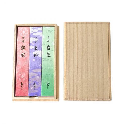Вариант для тех, кто хочет познакомиться с ароматами ценимых в Японии пород дерева, но не готов осваивать премудрости церемонии кодо. Во флагманском магазине одного из старейших производителей благовоний продаются наборы премиум-сортов ароматических палочек. Они сделаны из чистого древесного порошка без добавок: из уда высшей и средней категории и индийского сандала. Эта же компания производит экспортную серию Morning Star с понятными европейцу ольфакторными профилями вроде амбры, розы и пачулей и удобной керамической подставкой в комплекте — такой вариант идеально подойдет для начинающих.