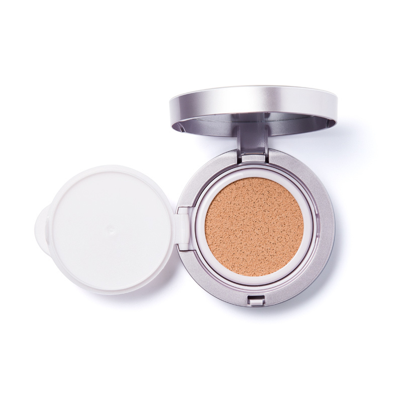 Трехкомпонентный CC-кушон: розовый сегмент с розовой водой, бежевый с CC-кремом и белый с осветляющей эссенцией. Обещает ровный осветленный тон без видимых воспалений и увлажнение. Ровное покрытие создается в том числе за счет специально разработанного спонжа с 80 000 микроотверстиями. Лайфхак: можно варьировать оттенок, набирая на спонж средства из трех сегментов в разных пропорциях.