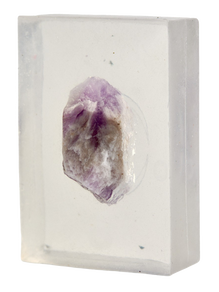 Снаружи — кристально прозрачное мыло с ароматом дерева пало санто, который остается на коже. Внутри — аметист, который останется вам на память.