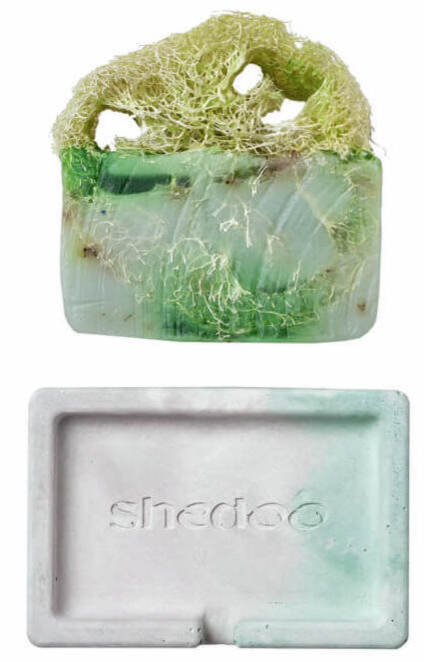Настоящее украшение ванной комнаты — и в данном случае это не заезженный глянцевый штамп, а констатация факта. Мыло с люффой ручной работы и прилагающаяся к нему подставка из экобетона и правда неземной красоты. Среди опций несколько цветов, но мы выбрали зеленое — оно пахнет сиренью. К слову, покупать полный набор каждый раз не обязательно — в ассортименте бренда есть мыло-рефил.