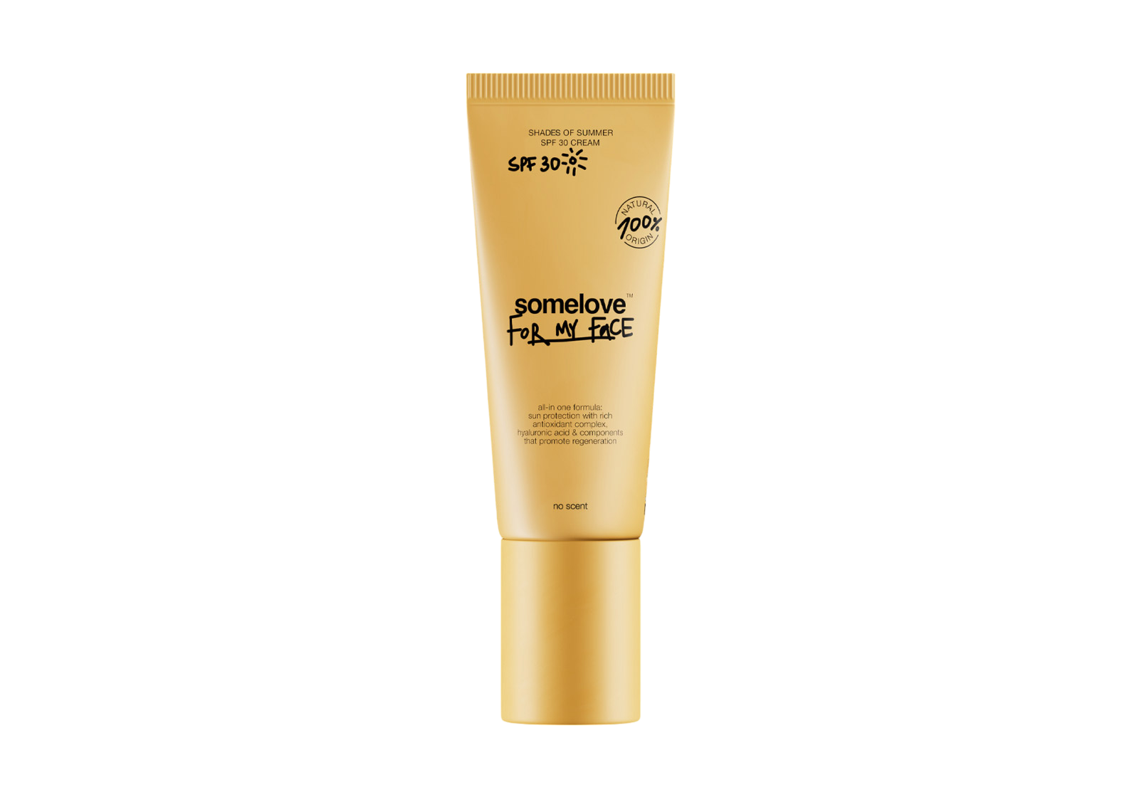 К сожалению, я открыла для себя средства с SPF только несколько лет назад. До этого мне казалось, что все комментарии, будто защита от солнца нужна всегда и везде, — это что-то на переизбыточном, и в целом зачем, мы что, на курорте? Только после встречи с косметологом, который смог донести до меня все о необходимости SPF-защиты, как поняла... Испробовала много вариантов, остановилась на потрясающем санскрине от бренда Somelove, который славится своими натуральными составами и средствами для детей. Ну не может бренд с косметикой для детей позаботиться о взрослых хуже, на мой взгляд. Душу греет еще и то, что это наш, локальный бренд.