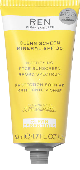 Ren сделал свой первый санскрин только в 2019 году. Он содержит 22% физического фильтра оксида цинка — согласно Skin Cancer Foundation, он закрывает кожу от всех типов лучей. Без силикона (который не опасен для здоровья и не забивает поры, просто многим не нравится), с функцией защиты от загрязнений окружающей среды, матовой текстурой, веганским составом и тубой из уже переработанного и годного для повторной переработки пластика. Судя по отзывам, кожу он все равно немного выбеливает, зато комфортно ощущается и очень «правильный» по всем параметрам.