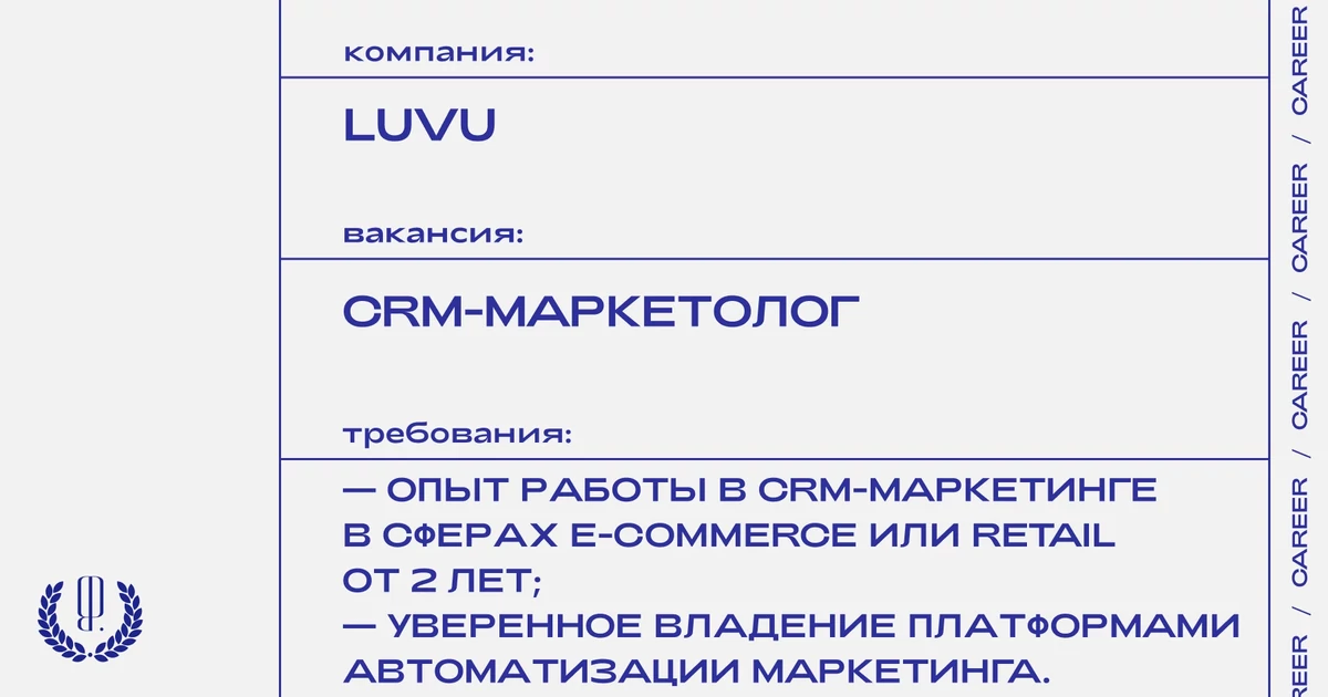 Резюме с темой письма «от The Blueprint» отправляйте на почту: hr@luvucosmetics.ru