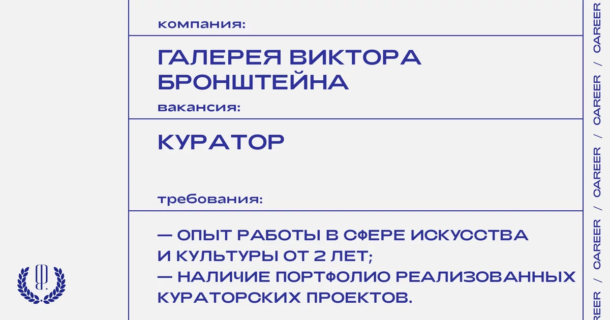 Резюме и портфолио с темой письма «Куратор от The Blueprint» отправляйте на почту expo@vbgallery.ru