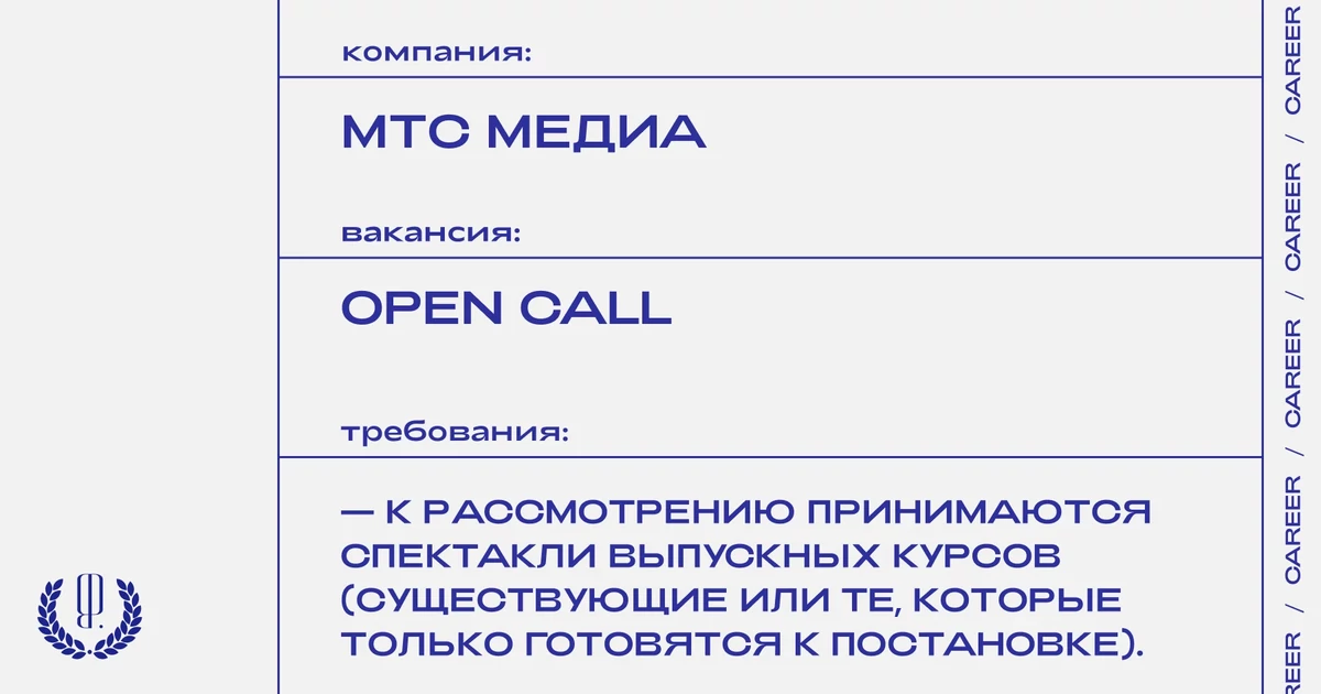 МТС Медиа объявляет опен-колл на фестиваль студенческих спектаклей «Первый план». К участию приглашаются театральные коллективы России.