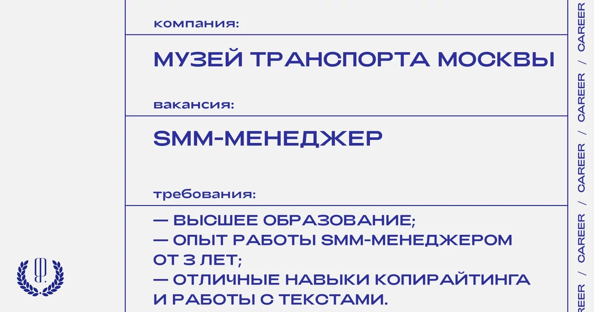 Резюме с темой письма «от The Blueprint» отправляйте на почту: pr@mtmuseum.ru