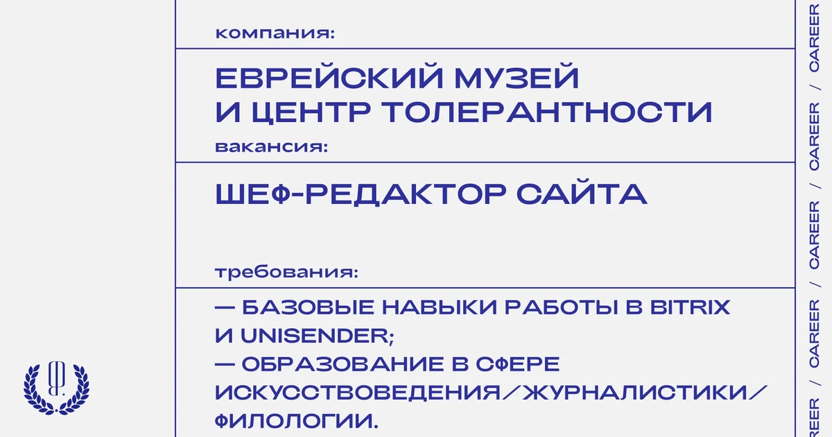 Резюме с темой письма «от The Blueprint» отправляйте на почту: pr@jewish-museum.ru