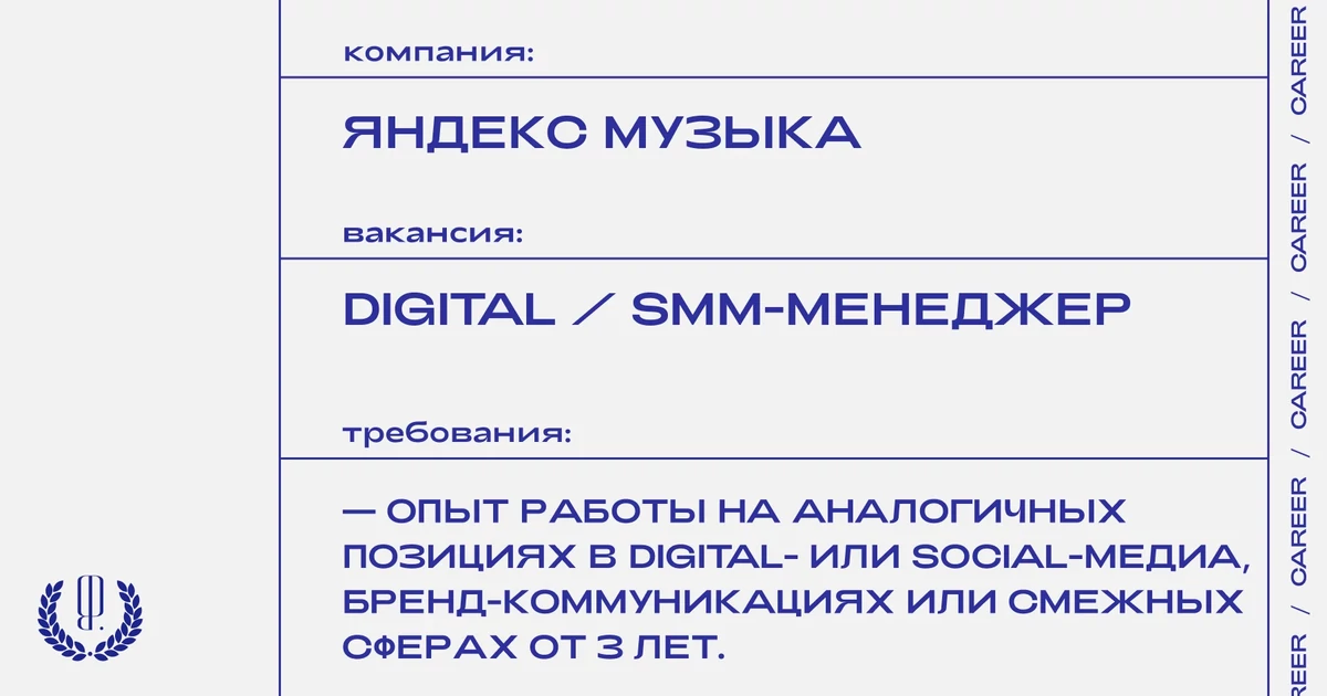 Резюме, мотивационное письмо и ссылки на соцсети с темой письма «от The Blueprint» отправляйте на почту: klaudia@vladey.net