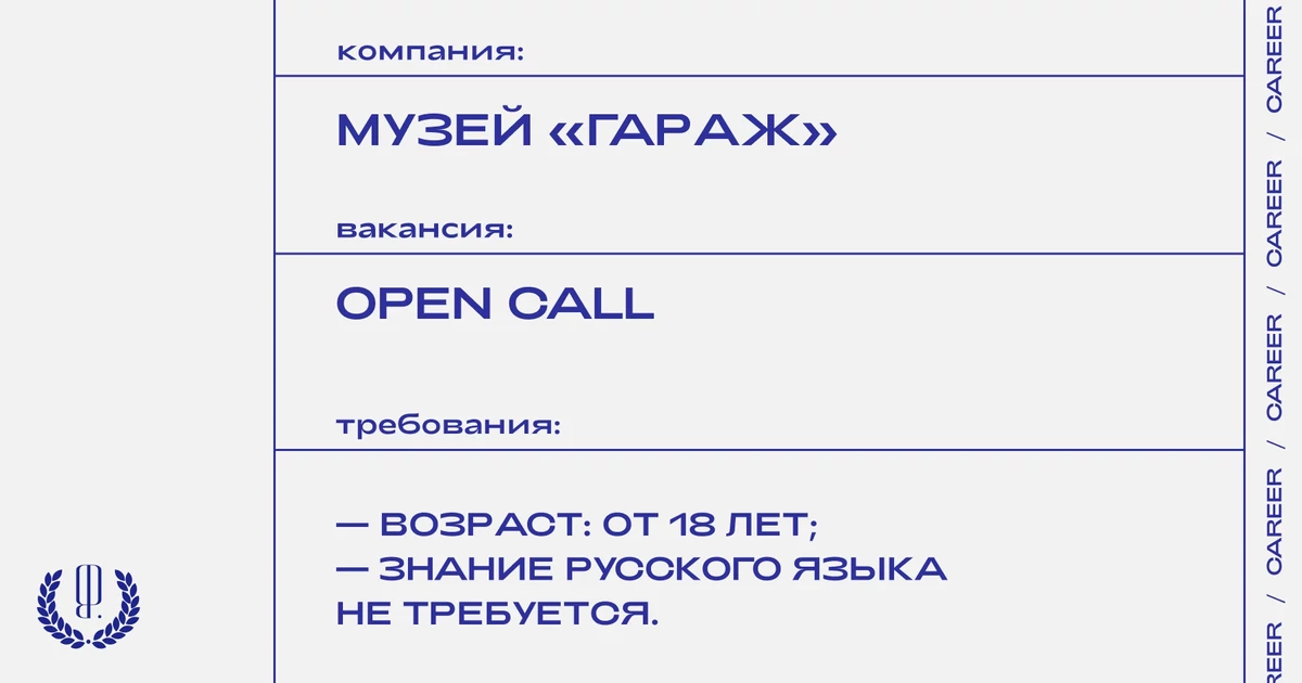 Откликнуться можно здесь (укажите, что вы «от The Blueprint»). Почта для вопросов: studios@garagemca.org. Дедлайн — 14 ноября.