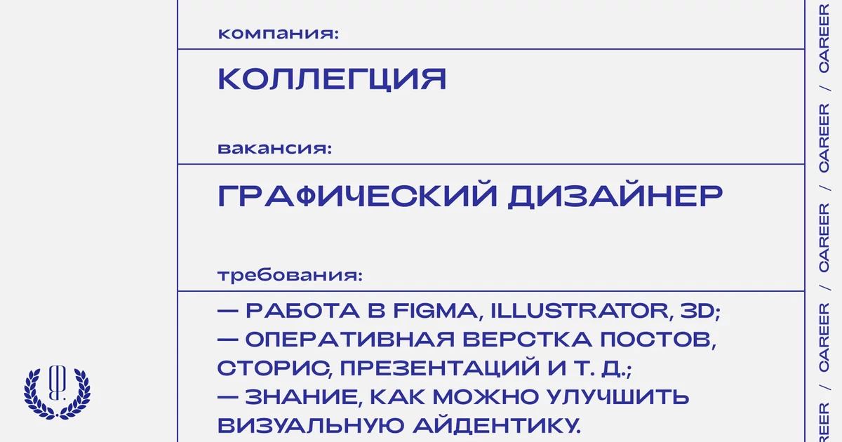 Откликнуться можно здесь (укажите, что вы «от The Blueprint»). К заявке прикрепите ссылку на портфолио, в котором: примеры роликов, спецпроектов, копирайтинга короткой формы (например, слоганы/заголовки/нейминг) и кампаний 360 или Big Idea.