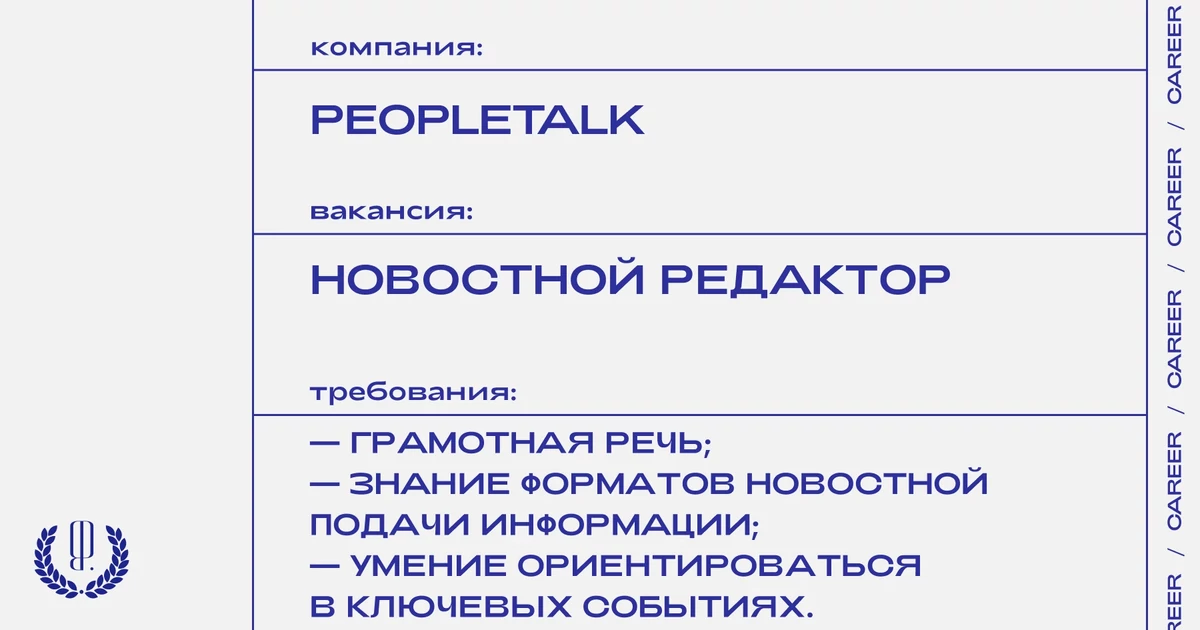 Резюме, краткий рассказ о себе и примеры работ с темой письма «Редактор отдела новостей от The Blueprint» отправляйте на почту: rlitfullina@peopletalk.ru