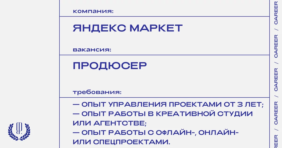 Откликнуться можно здесь (укажите, что вы «от The Blueprint»). К заявке прикрепите ссылку на портфолио, в котором: примеры роликов, спецпроектов, копирайтинга короткой формы (например, слоганы/заголовки/нейминг) и кампаний 360 или Big Idea.