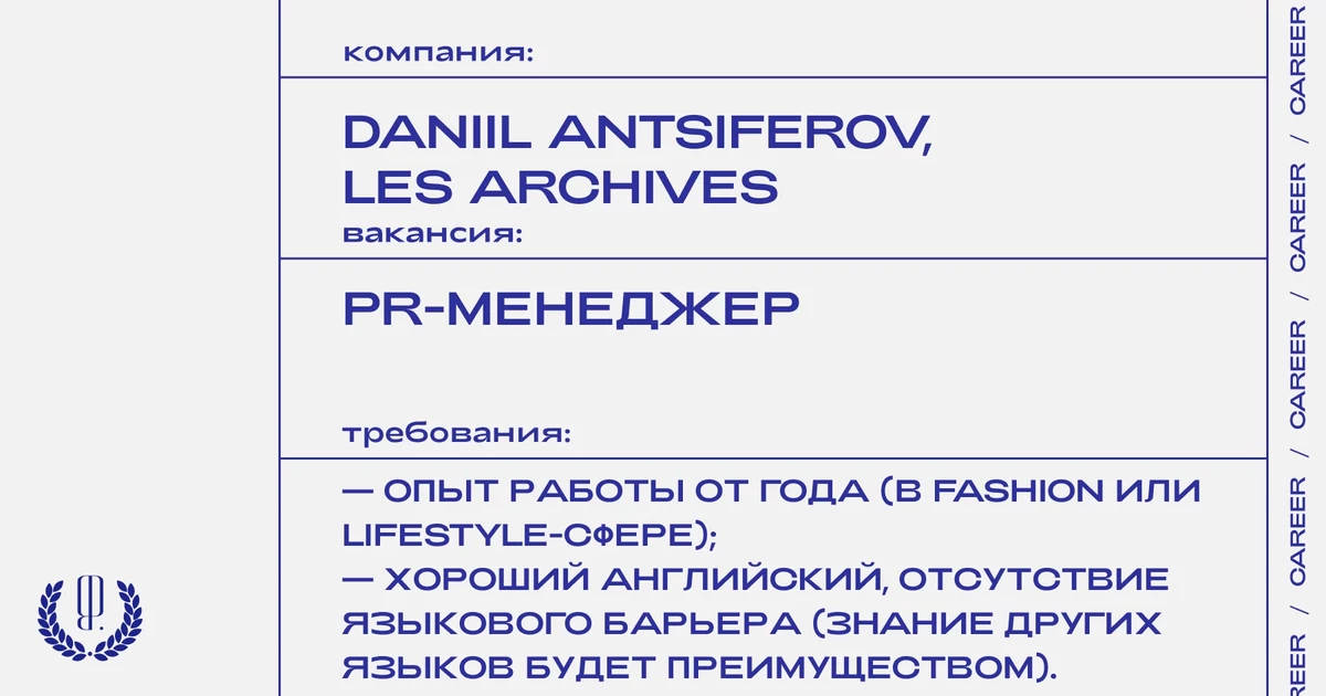 Резюме и сопроводительное письмо с кратким рассказом о себе с темой письма «Отклик на вакансию PR-менеджер от The Blueprint» отправляйте на почту: m.isakova@daniilantsiferov.com
