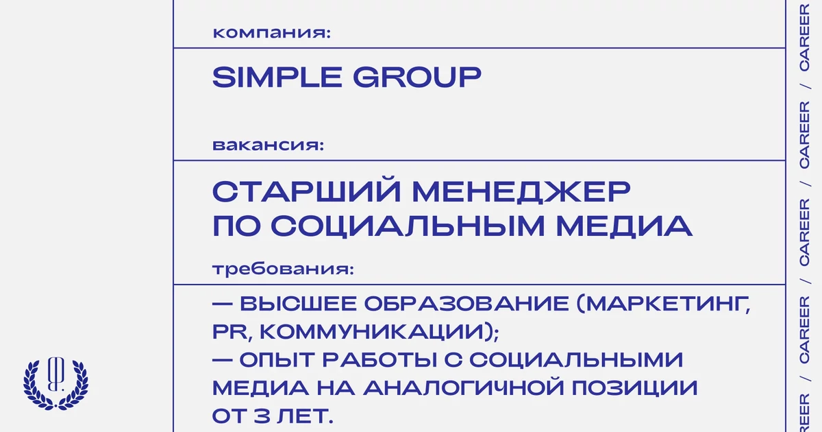 Резюме с темой письма «от The Blueprint» отправляйте на почту: arybalkina@simple.ru