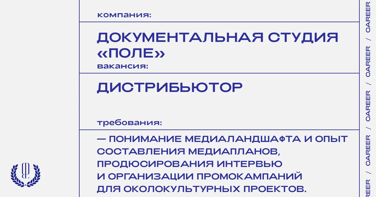 Резюме и сопроводительное письмо (приложите ссылки на несколько кейсов из портфолио и расскажите о вашей мотивации) с темой письма «Дистрибьютор для Поля от The Blueprint» отправляйте на почту: hello@pole.media