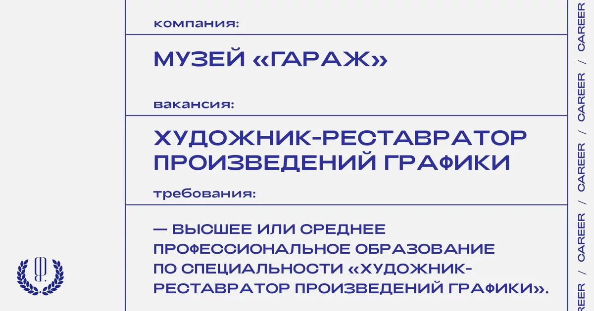 Резюме и портфолио с темой письма «Художник-реставратор от The Blueprint» отправляйте на почту: a.brant@garagemca.org