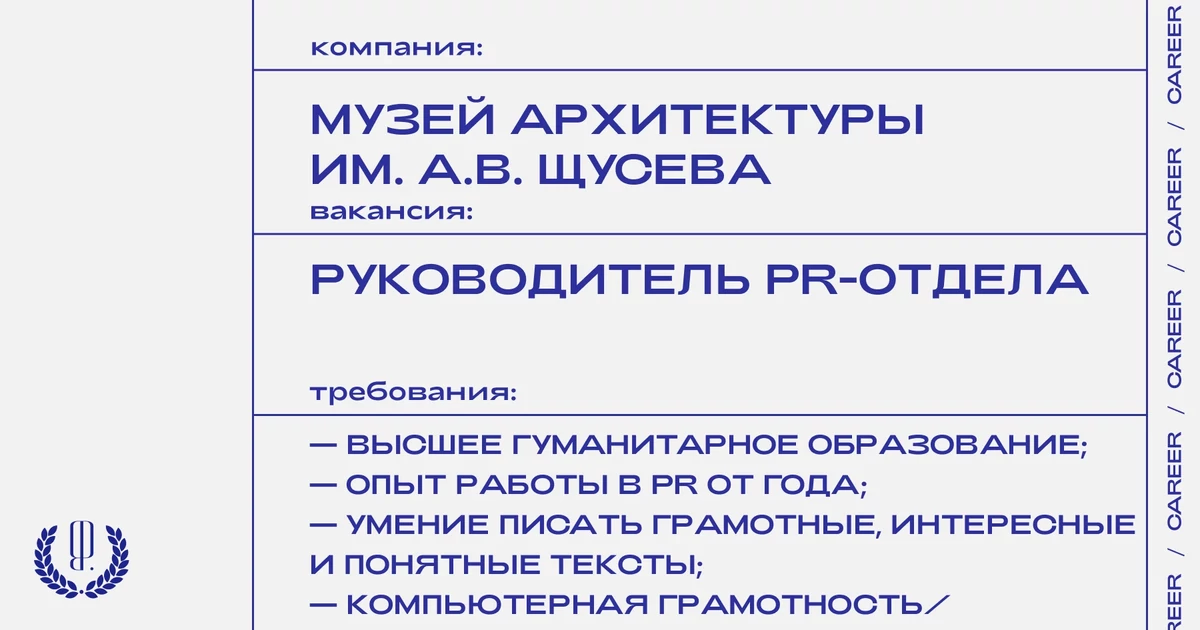 Резюме с темой письма «от The Blueprint» отправляйте на почту: muarpost@yandex.ru