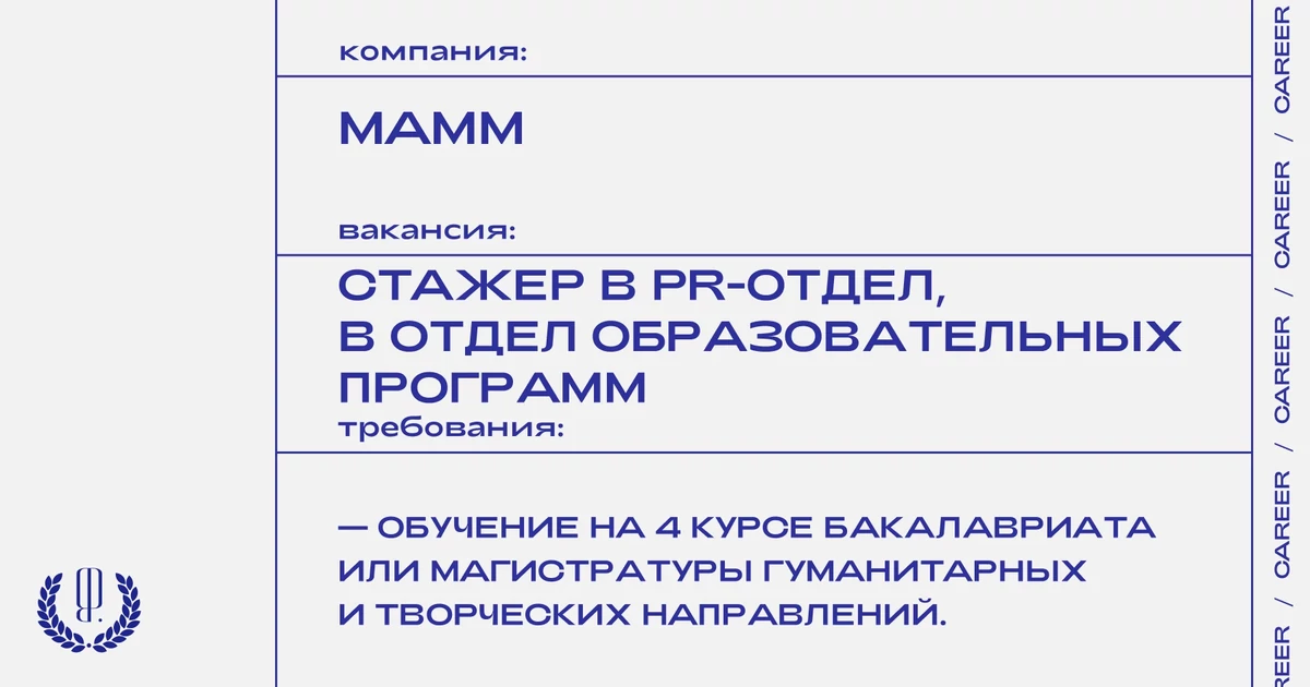 Резюме и короткое мотивационное с темой письма «от The Blueprint» отправляйте на почту: job@mamm.art