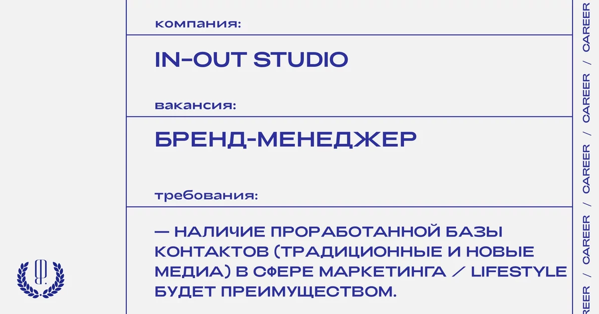 Резюме с темой письма «от The Blueprint» отправляйте в телеграм (@polysafonova) или на почту: hr@inoutstud.io. Дедлайн — 24 ноября.