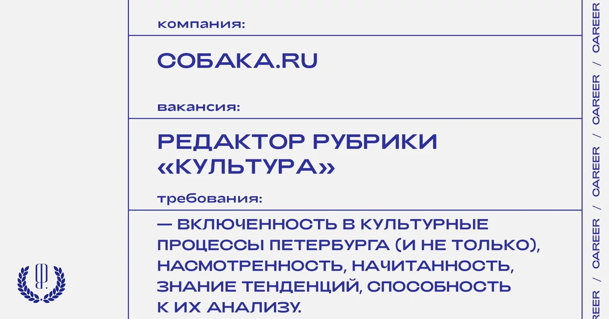 Собака.ru ищет новостного редактора рубрики «Культура».
