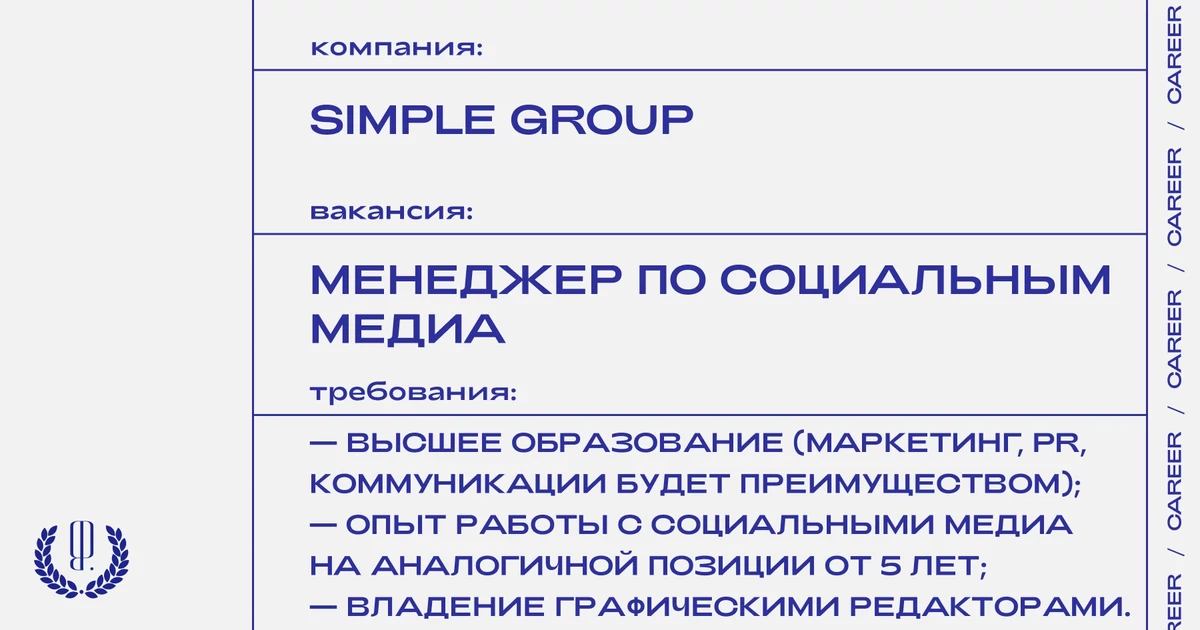Резюме и портфолио с темой письма «от The Blueprint» отправляйте на почту: rd@planta-rosa.com