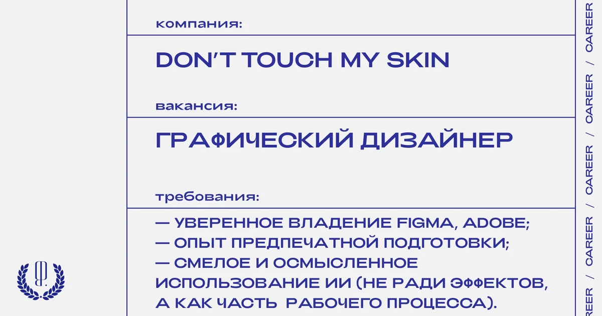 Резюме с темой письма «Графический дизайнер в DTMS от The Blueprint» отправляйте на почту: info@dtmskin.com. Добавьте пару слов о себе, ссылки на портфолио и любые проекты, которыми гордитесь.