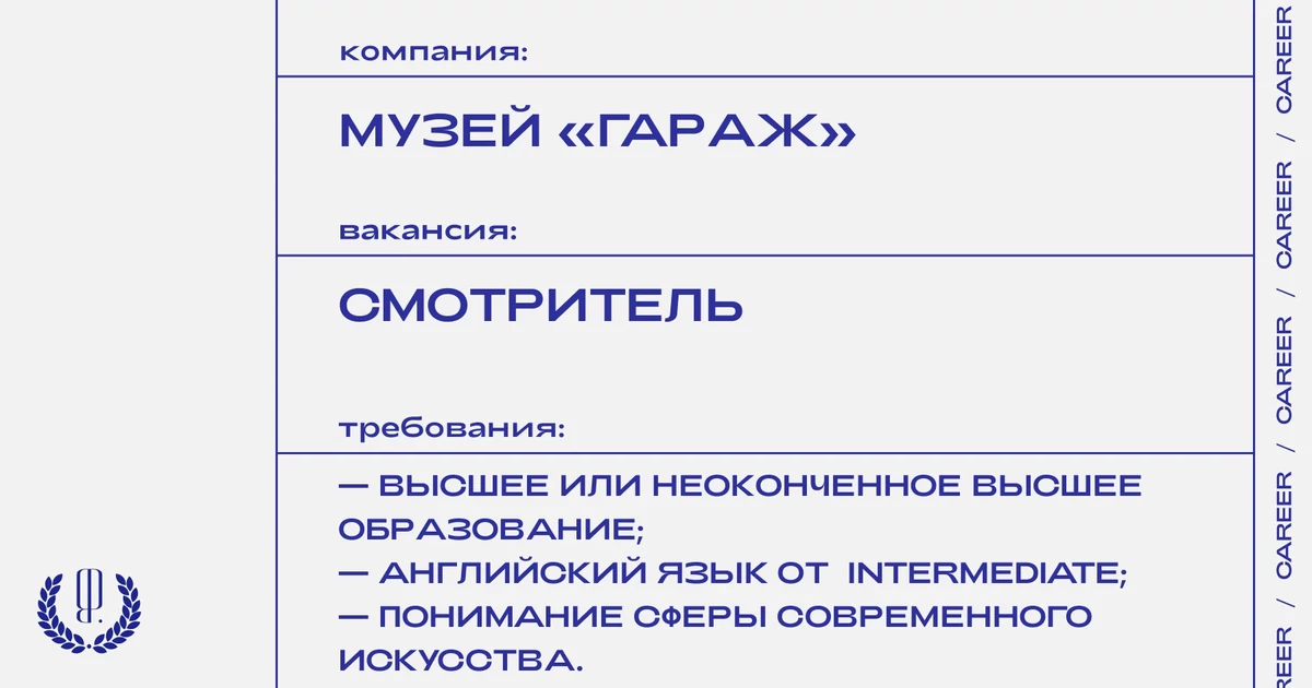 Резюме с темой письма «Смотритель от The Blueprint» отправляйте на почту: welcome@garagemca.org