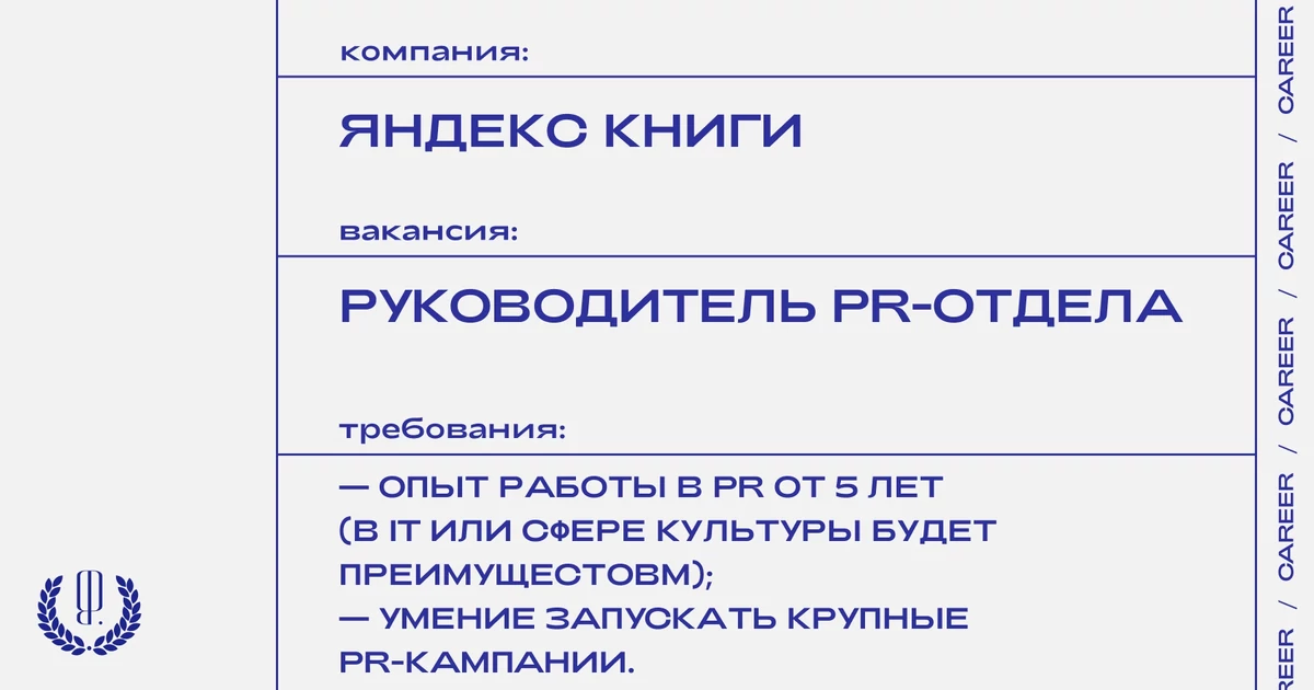Резюме с темой письма «Pr от The Blueprint» отправляйте на почту: lindaism@yandex.ru. При отклике приложите: 2−3 кейса (с кратким описанием задачи, подхода и результатов с метриками), 1−2 примера ваших текстов (релиз/анонс/колонка).