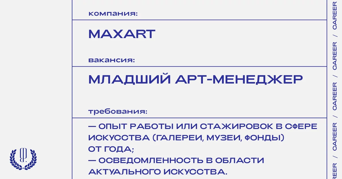Резюме с темой письма «МЛАДШИЙ АРТ-МЕНЕДЖЕР от The Blueprint» отправляйте на почту: info@maxart-foundation.com