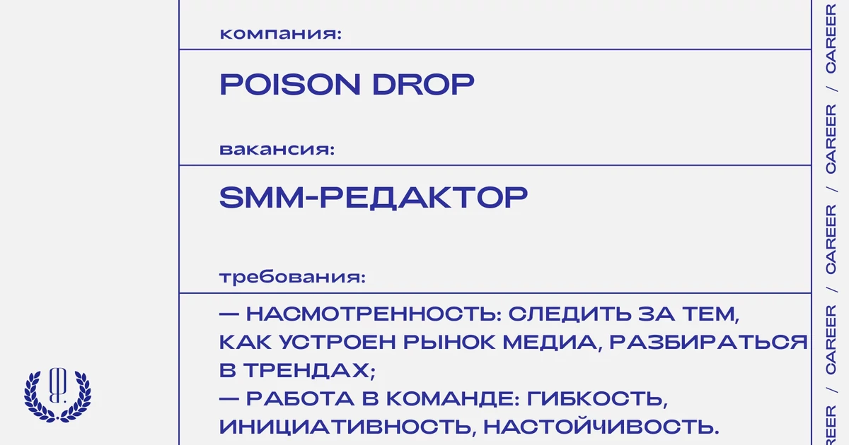 Резюме с темой письма «от The Blueprint» отправляйте на почту: avita@poisondrop.ru